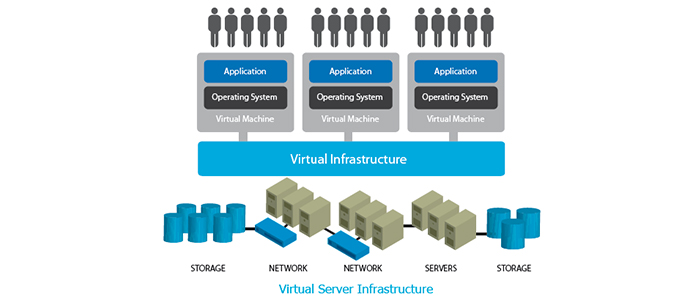 Virtualized Infrastructure คือ การจำลองทรัพยากรของ Hardware ทั้งระบบที่ระบบปฏิบัติการจำเป็นต้องใช้งานจาก Physical Hardware เช่น CPU, Memory (RAM), Hard disk and Storage และอื่น ๆ ทำให้เครื่องคอมพิวเตอร์เพียงเครื่องเดียว สามารถจำลองเสมือนกับมีเครื่องคอมพิวเตอร์หลาย ๆ เครื่องได้ สำหรับเครื่องคอมพิวเตอร์เสมือนที่สร้างขึ้นเราเรียกศัพท์ในภาษาอังกฤษว่า (Virtual Machine) โดยการทำงานของ Virtual Machine สามารถทำงานได้เหมือนกับเครื่องคอมพิวเตอร์ทั่วไปได้ ตั้งแต่การปรับ Bios ติดตั้ง Operating System เลือกการใช้งาน CPU เลือกขนาด Hard Disk เลือกขนาด Ram ได้ตามต้องการ